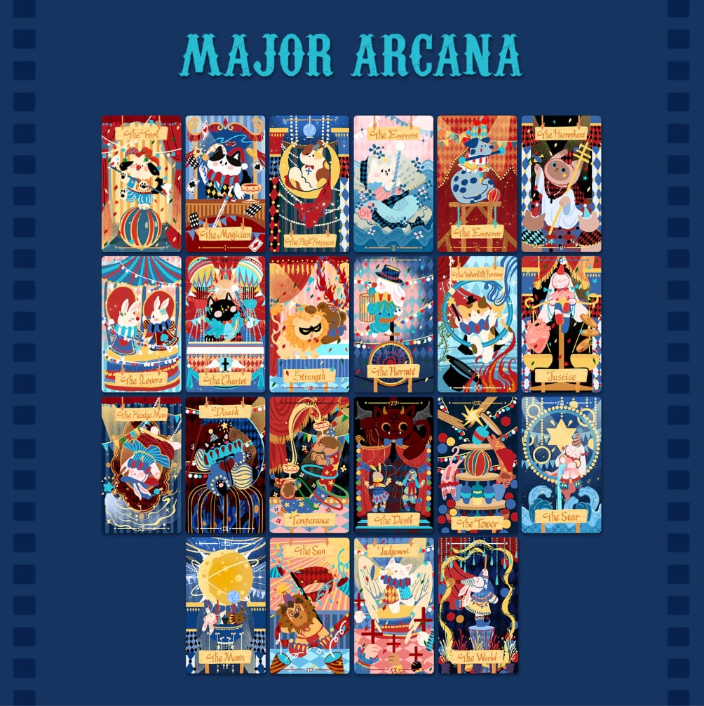 幻影と運命の間を漂う、星から生まれた動物サーカスのタロットです。