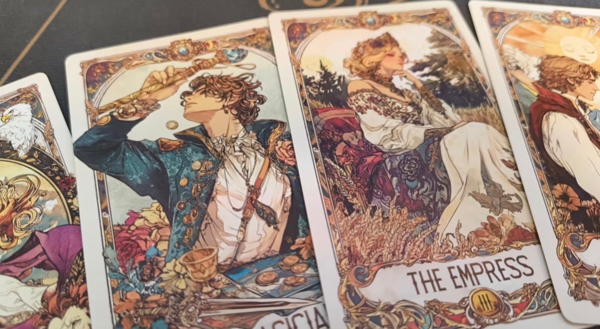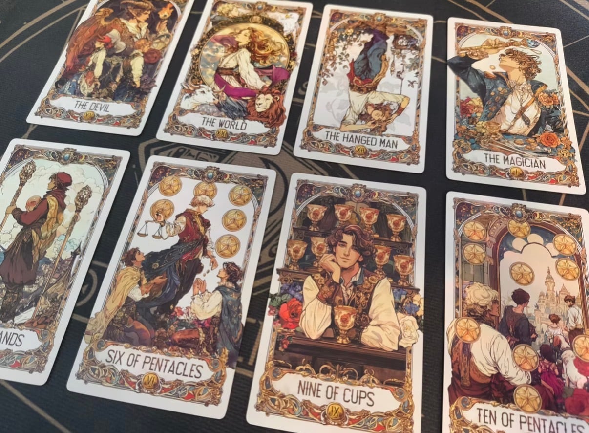 クラシックなタロットの象徴性に、物語性のある叙情的なアートワーク。
