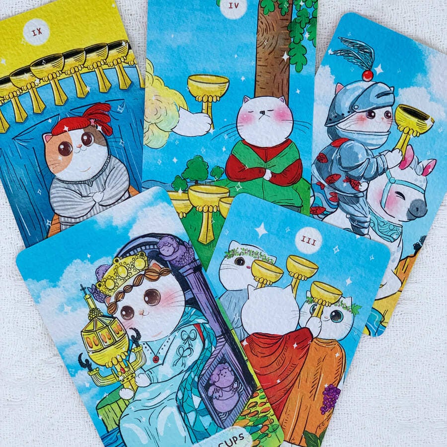 かわいいだけじゃない、力強いカードデザインのチャビー キャット タロット。
